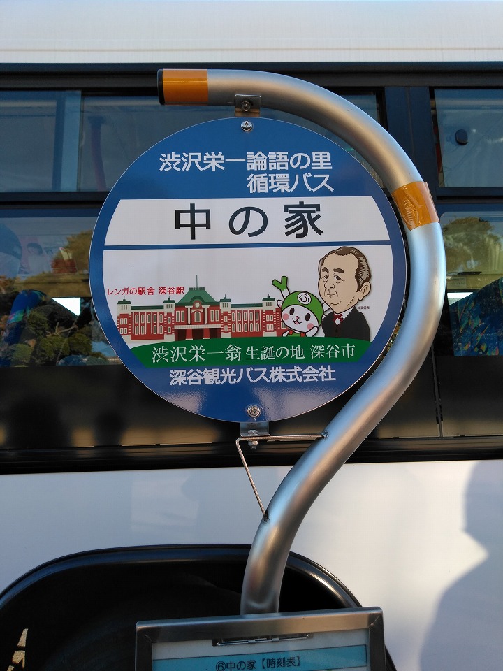 「論語の里」循環バス到着。「論語の里」をぐるっと巡回した後、JR深谷駅前まで運んでくれます。