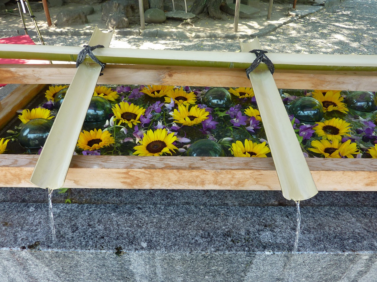 手水舎の水盤にこんな演出がされていて心が躍りました。
