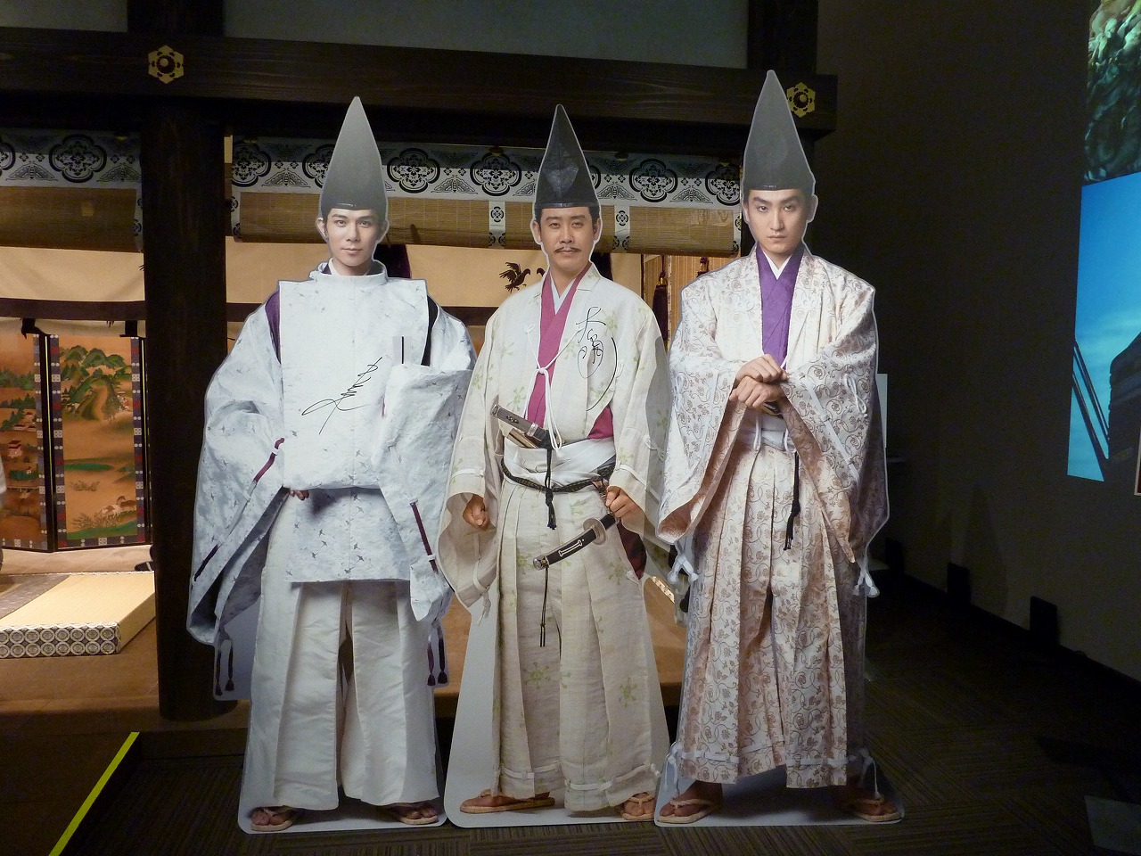 等身大パネル(北条家の大柄な3人)。