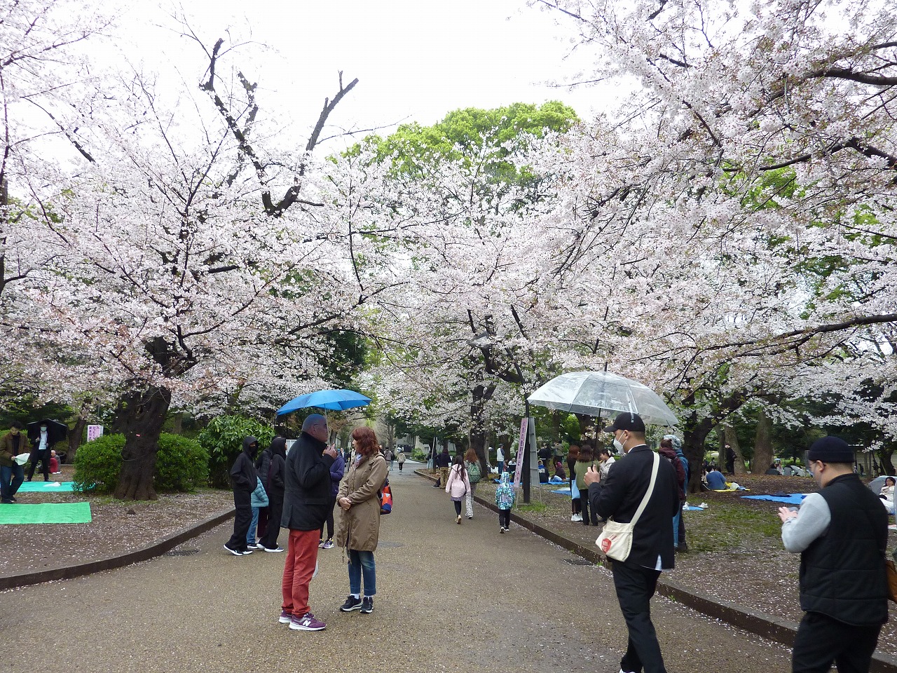 雨中のお花見を楽しむ人々に…