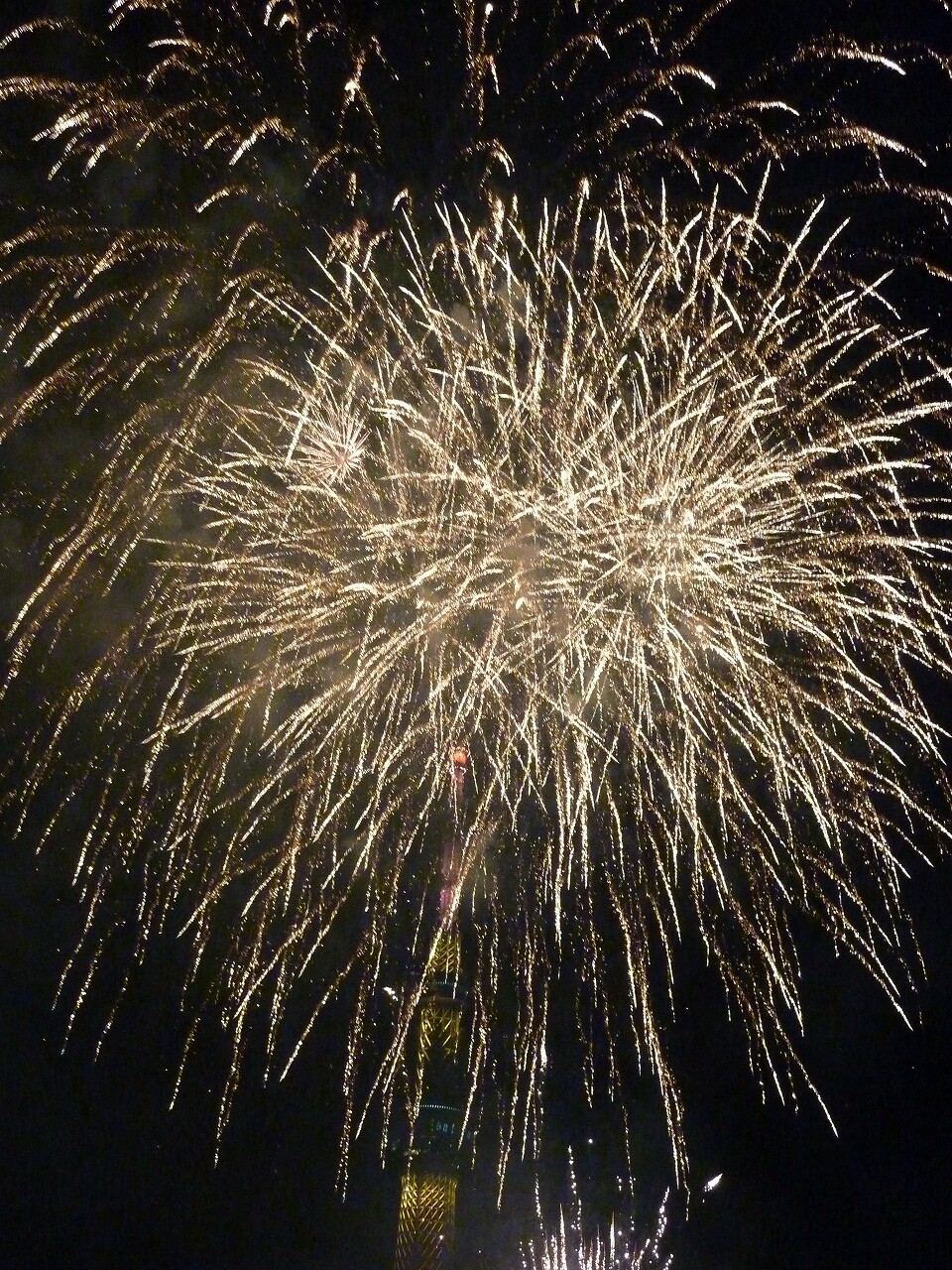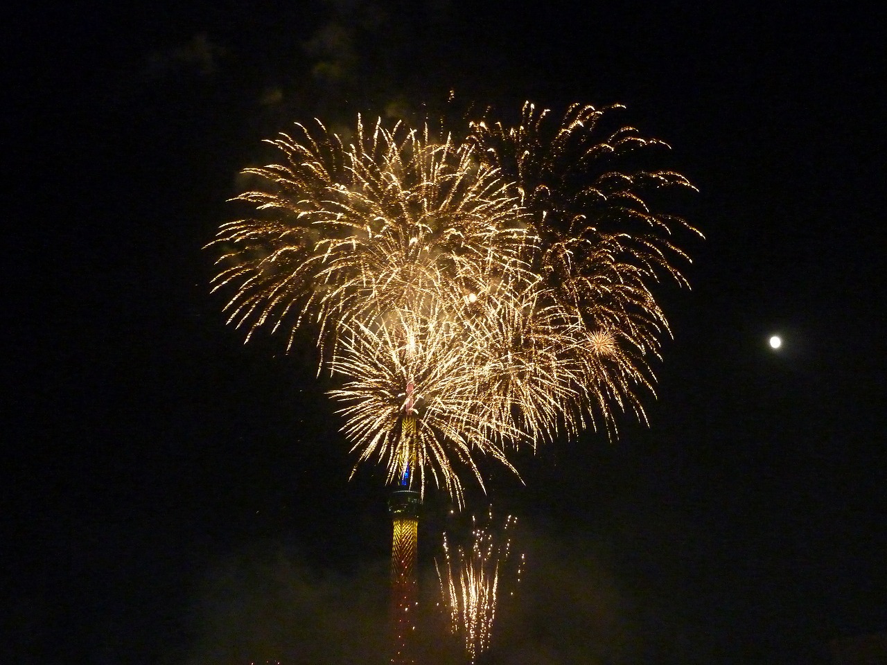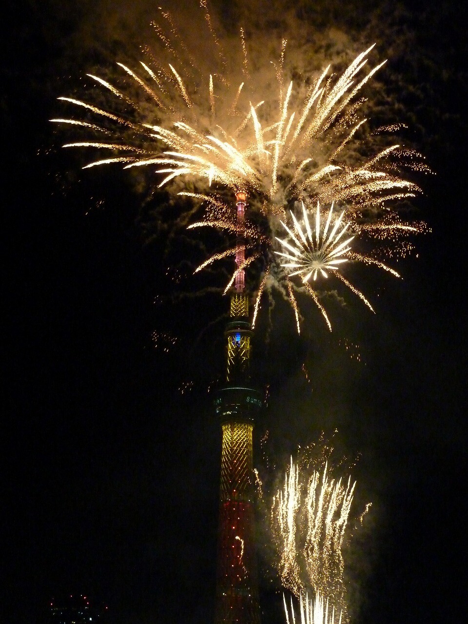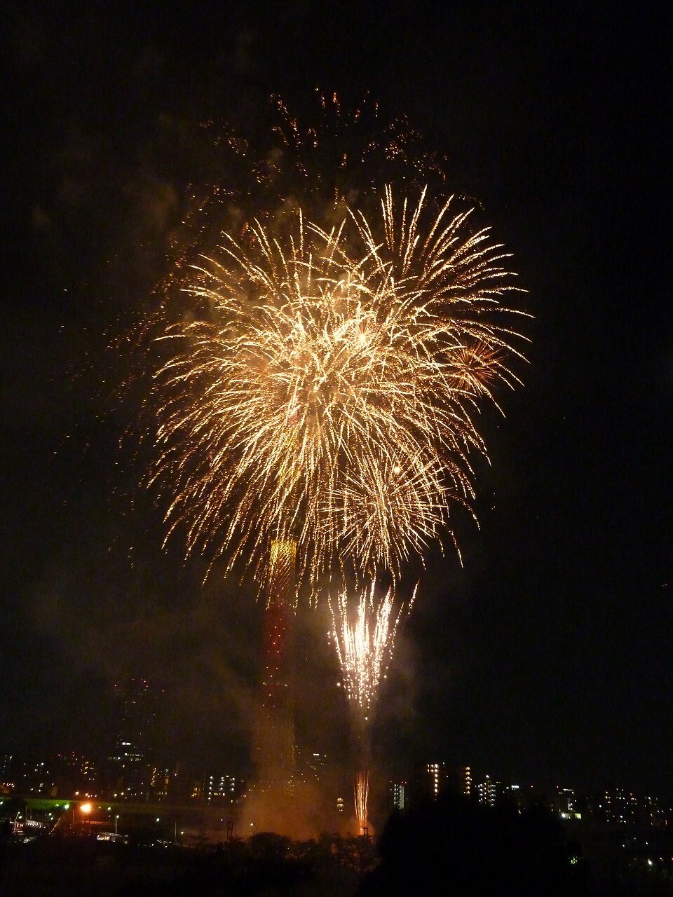 大ラスの大玉連発後は、火薬の煙でスカイツリーがまったく見えなくなるほど。