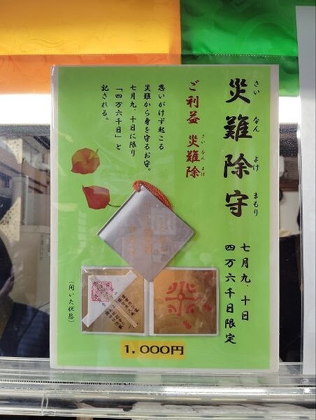 本堂の前でも(本堂内でも)四万六千日限定の御守札を授与しています。