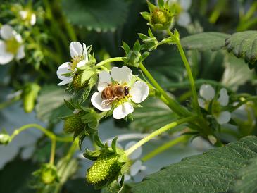 いちごはヘタを押さえて手前に倒すと簡単に収穫できます。