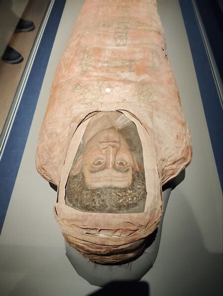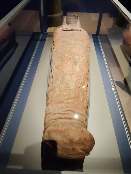 最後のステージでは、人2体や動物のミイラをはじめ、美しい副葬品の数々や葬儀のための道具、