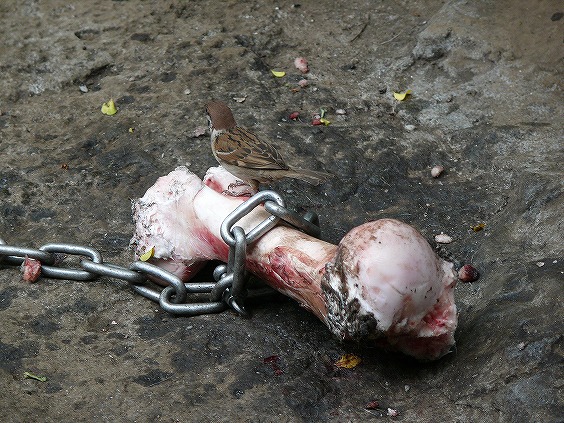 写真は、ゴリラ・トラ・トラのエサ&スズメちん