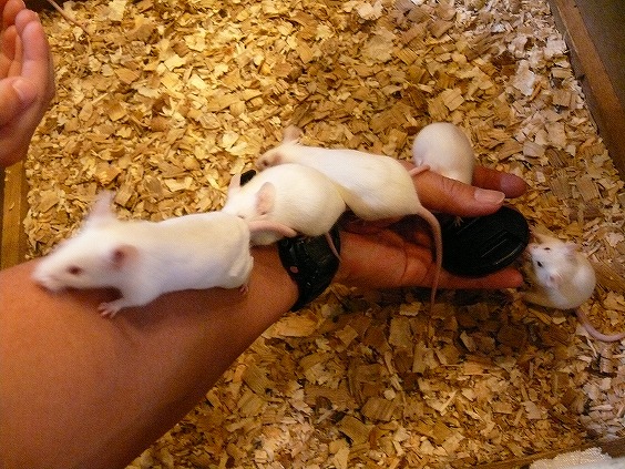 (写真左)小動物と触れ合える曲屋(まがりや)でハツカネズミと。