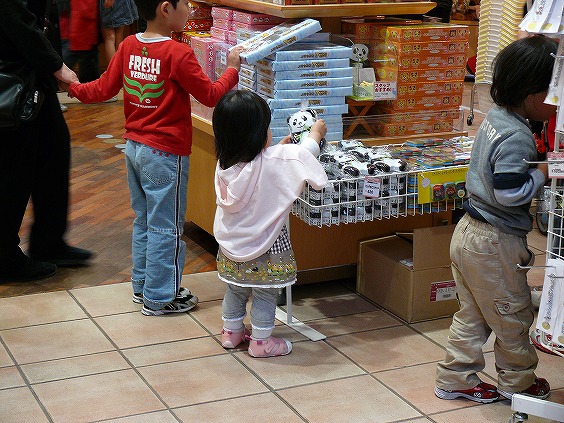 ▼「パンパン」。最後に立ち寄ったお土産ショップでもパンダへの尽きせぬ興味を示すAちゃん。