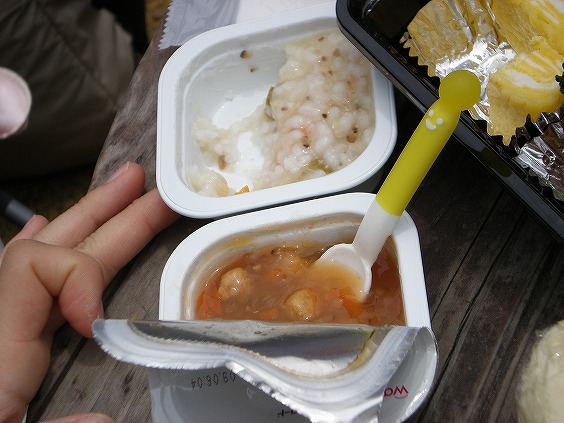 旦、試食させてもらいました。Aちゃん、食べながら眠ってしまいました…