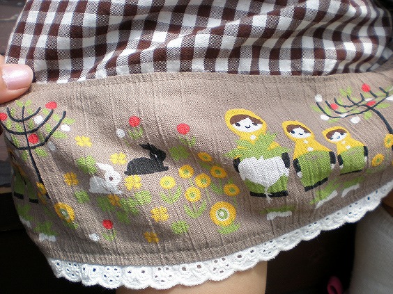 。かわいいスカートを履いてます。マトリョーシカ柄って最近けっこう流行ってる