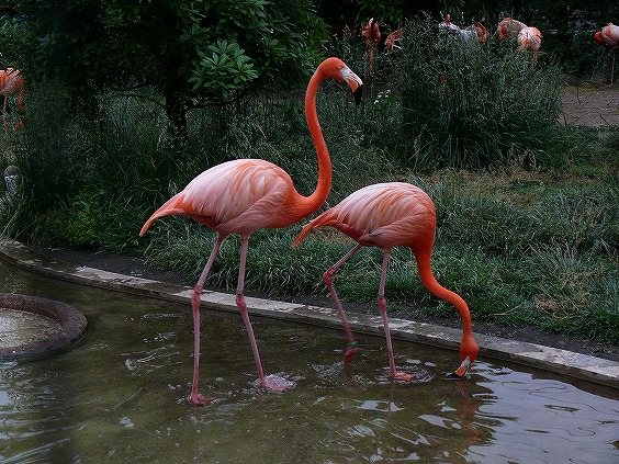 (写真右)フラミンゴの色、いまが一番綺麗だそう…。繁殖期