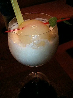 ピーチのフローズンカクテル、上に白桃が半分になって乗っかってました