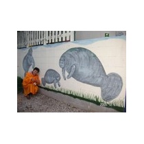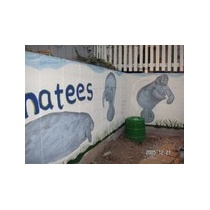 バネットのおく右側の壁に描かれた親子マナティー。 ガーを2匹でフロリダの水をアピールしたかったのですが、 かわいいマナティーの息つぎのシーンを描いてもらいました。 だんだんうまくなっていくきうち画伯に画伯自身でもびっくり! 私は草を一生懸命描きました。 ...