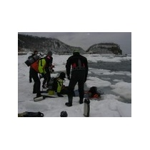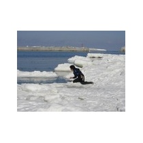 つ・つめたい・・ いよいよおびえての流氷ダイビングの始まりです。 3日前から急に暖かくなってしまった知床・ウトロはチェーンソーで穴を開けて入るエントリー方法でないのです。 凍った海の上を歩いていき、切れ目まで「そり」で運んで氷からエントリー予定。 ダイ ...