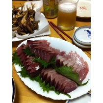 坂田には料理も作れるとっても器用な漁師さんがいます。 坂田合宿などの長期滞在(3日間以上)のときに、時々味わうことができる漁師料理です。 左写真:カツオとイナダのお刺身 右写真:小アジ(ジンタ)唐揚げ 左写真:なめろう 右写真:何かの魚のカルパッチョ ...