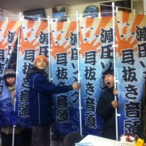 大きなのぼり旗5本。 もちつきに大活躍する予定でした。 マリンフェアにはこれを持って応援に行く予定だったのに・・ね。 『スクーバダイビングクラブ マナティーズ』http://www.din.or.jp/~manatees/〒160-0002 東京都新宿区坂町15-17 03-5367-1277 千葉の ...