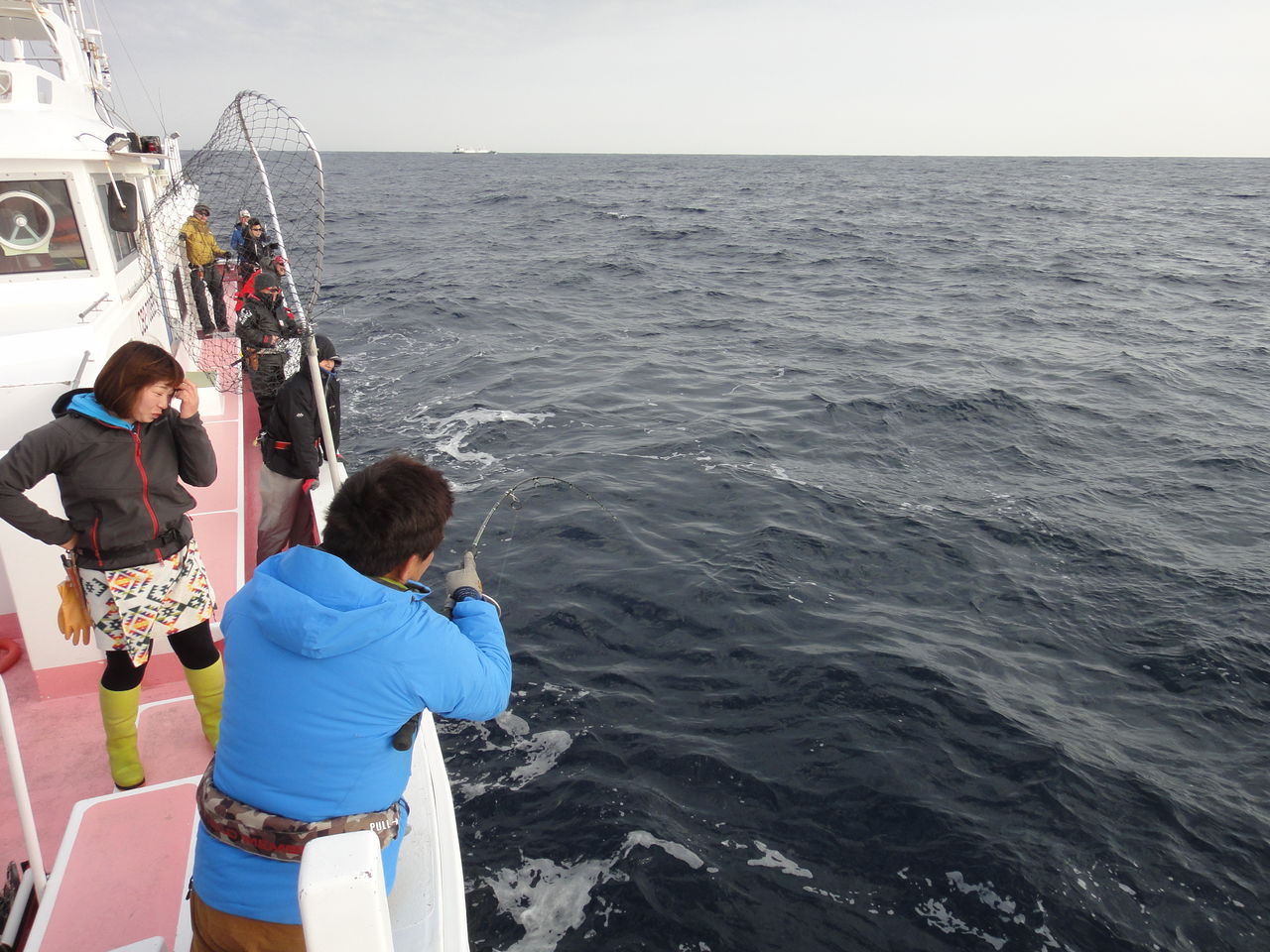 女性アングラーにも優しいワラサ!楽しそうにファイトをしてます。次々にロッドが曲がる!