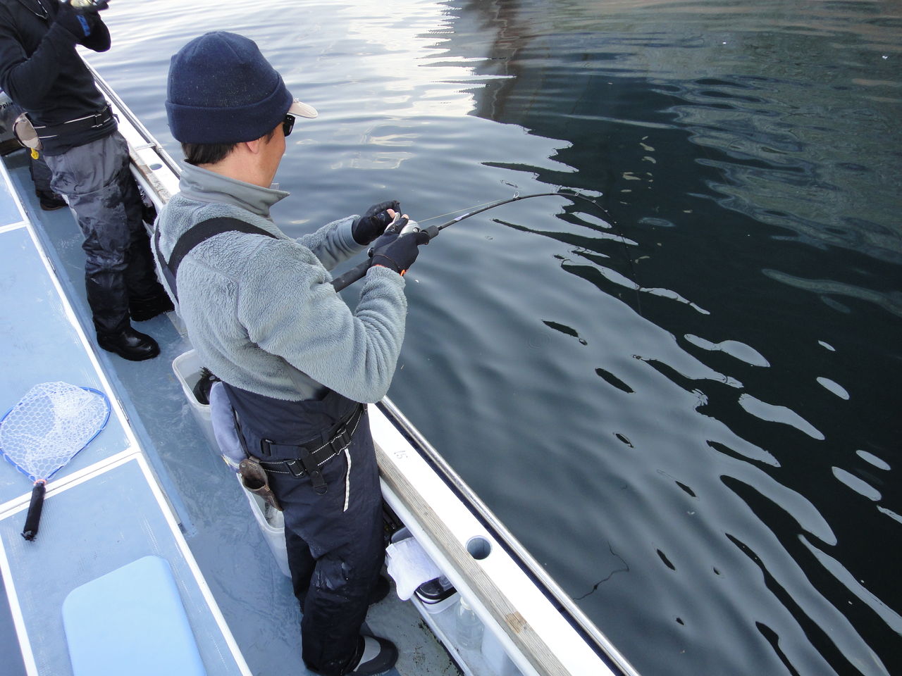今日も感度と反発がある「ブルーアイアスBA583S」を使い、50mを超える水深でもジグをしっかり動かせた。これから春の潮流が速くなれば、更に活躍してくれるロッドとなるでしょう!