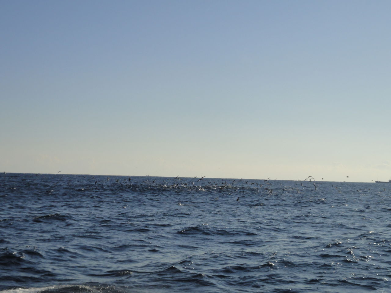 ベイト(カタクチイワシ)が大量に接岸したのか?灘よりから沖まで鳥だらけ!