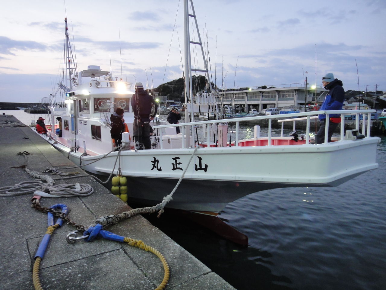 春が近いとはいえ、まだまだ冷え込みの厳しい早朝は、船縁は凍ってますので乗船時は十分注意して下さい。ってことで・・・再び「大原・山正丸」さんへ乗船。前日、釣果が難しかった影響なのか?久しぶりに広々と船を使わせて頂きました。