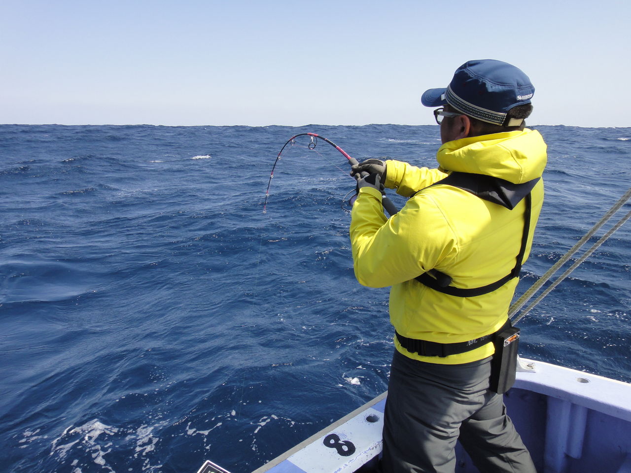 *水深50m以上、船底方向へ入る逆流しにおいて、スピニングでは困難な姿勢でのジギングとなるが、ベイトタックルなら、スピニングより遥かに楽なジギングが可能。ヒット後も無理なポンピングをしなくてリールの力を利用しスムーズなファイトが行える利点がある。