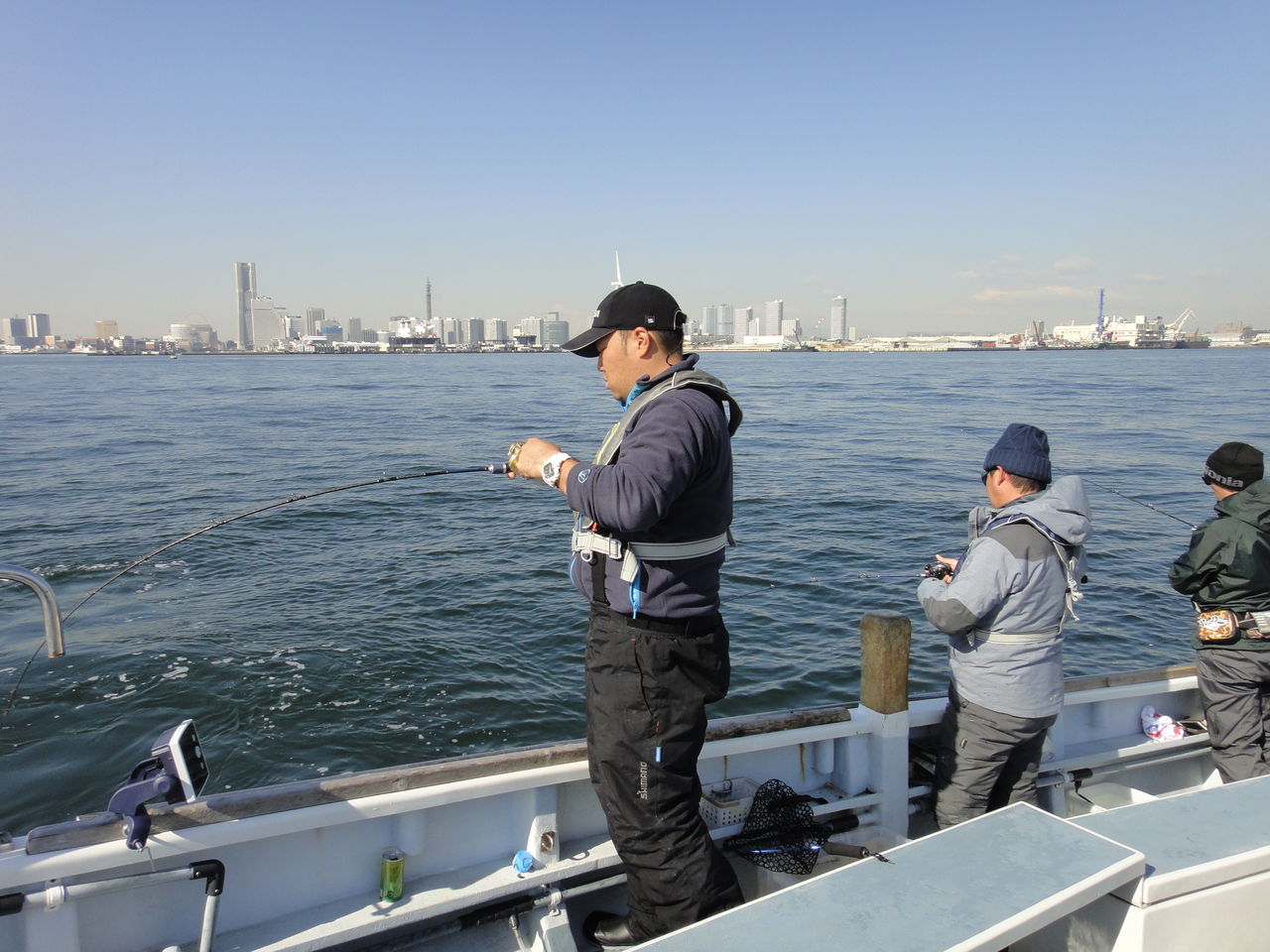 風も無いと潮が流れない事もあり心配でした・・・。横浜の街並みを見ながらのジギングです。