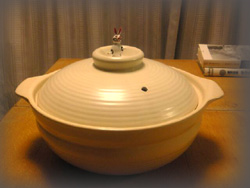 January 27, 2007 土鍋 近所の金物屋でIH対応の土鍋を見つけた。そこの金物屋は親子でやっていて、お店に入ると「ヘイヘイ、何をお探しでしょう?」と揉み手で寄ってきて、あれこれ出してる。帰りも「ありがとうございました〜」と出口まで出てくる。感じがいい。あっ、もう一軒、金物屋があるのだが、そこは愛想もクソも無い。全然商品が売れている気配がないのだが、よく「仕入れの為にお休みします」と張り紙がしている。開いていても「すいませ〜ん」と何度呼んでも出てこない事がしばしば。諦めて帰った事もある。一度何度呼んでも出てこないので、中を覗いたら(テレビの音は聞こえる)店の奥の居住スペースみたいな所で、おびただしい量の淡麗の空き缶に埋もれて眠っているオヤジを見た。あっ脱線。そうIH対応の土鍋を買ったのだ。よく鍋をするのだが、卓上では電磁調理器を使っているのでステンレスの普通の鍋を使っていた。でもラズウェル細木が「鍋は土鍋に限る、アルミやステンレスの鍋で食べても貧乏学生の様でわびしい」なんて事が書いてあったのを思い出した。念願(で、も無かったけどね)の土鍋ゲット。説明書通りに、使う前にちゃんと米のとぎ汁を煮立たせて、一晩乾燥させた。(ヒビや臭いの防止)鍋はキムチ鍋。昆布で出汁をとって、キムチを入れて味噌を入れて、野菜、きのこ、豚肉、牡蠣、それにゴマたっぷりすって入れる。真っ赤な色が食欲をそそるここまでは、コンロですませて、さぁ食うぞ!電磁調理器の待つ、食卓へ、ピーピーピー???無常な電子音。グツグツいっていた鍋も大人しくなってきた。なんだか我が家の電磁調理器は、対応してなかったらしい。。。そういうや、100V対応とか200V対応とか書いてあった。残念、盛り上がった分、落胆も大きい。まあいいや、中身はおんなじ。今までそうだったからいいだろう。ああ、ラズウェル先生、貧乏学生って・・・人気blogランキングへ