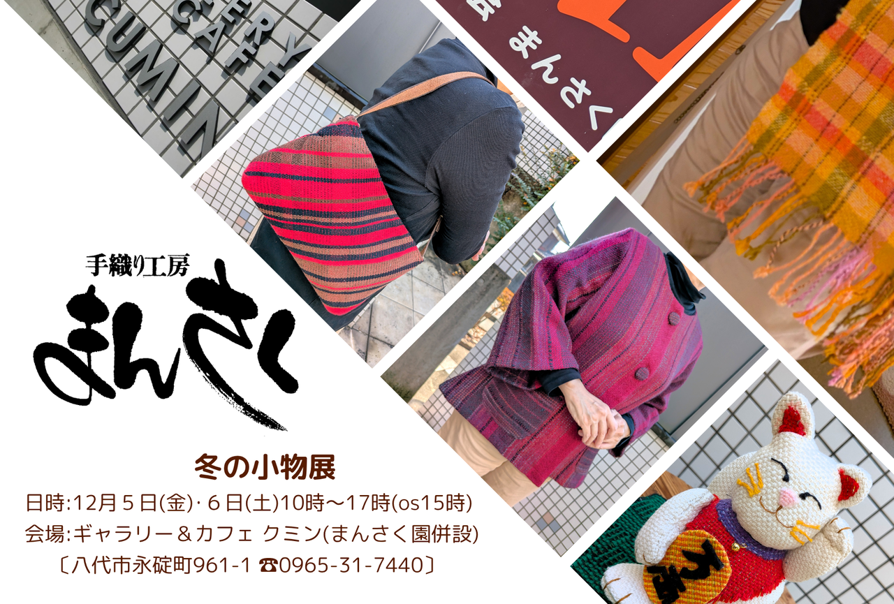12月5日(金)・6日(土)に「手織り工房まんさく 冬の小物展」を開催します。