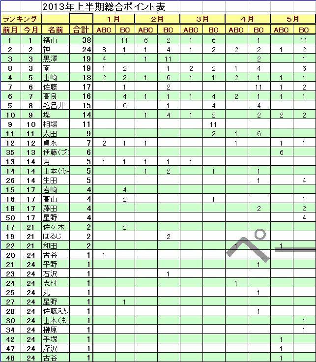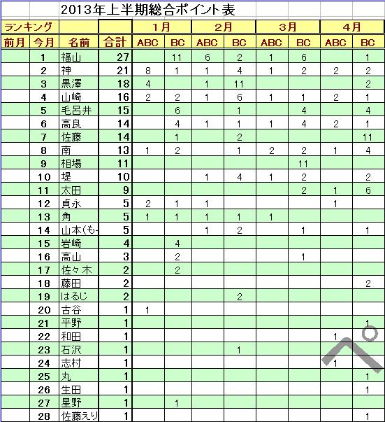 2013年BCポイントランキング