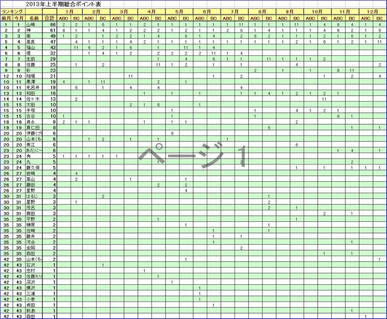 BCマンスリー 優勝10p 準優勝5p 3位3p 予選通過1p 参加1p