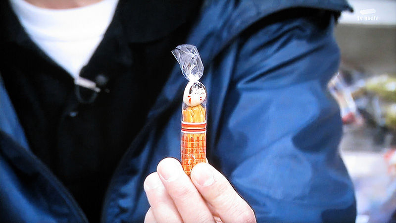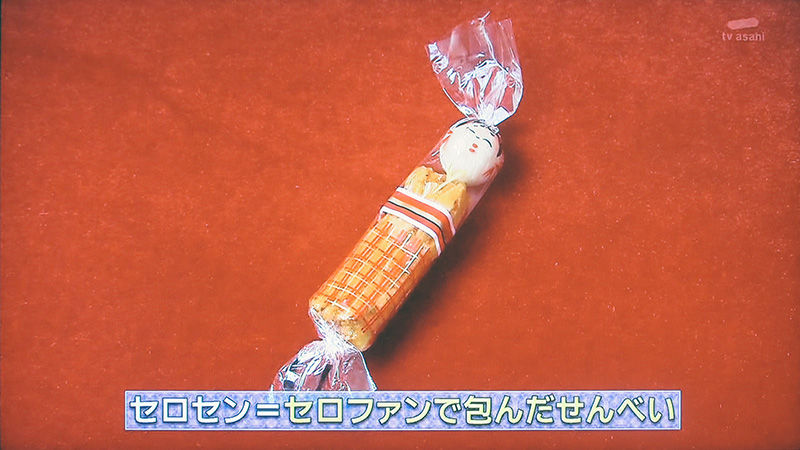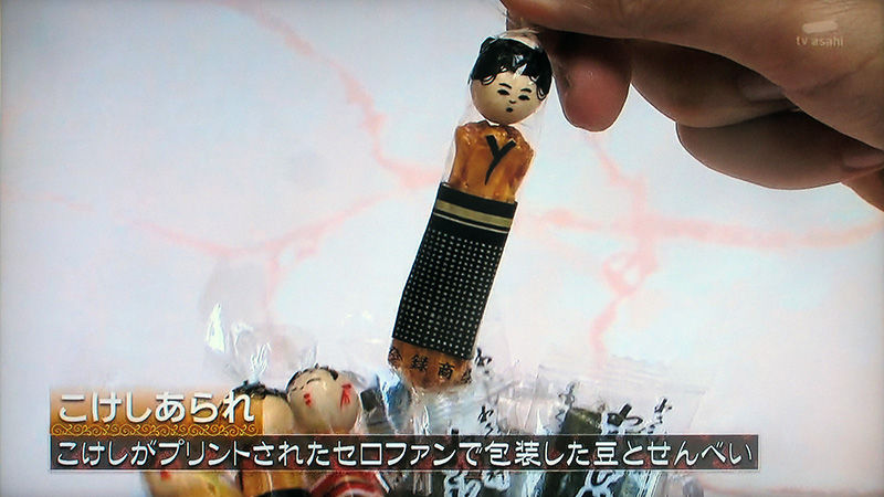 こけしがプリントされたセロファンで包装した豆とせんべい