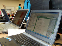 現地に到着すると、中は室工大の学生を中心に大盛況。他に札幌からはLOCALより@smokeymonkey氏(*3)・澤田氏が来ており、また北見からの遠征組も来ていた。25人程度までを想定した部屋に30人近く入っていた。