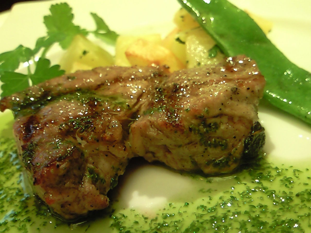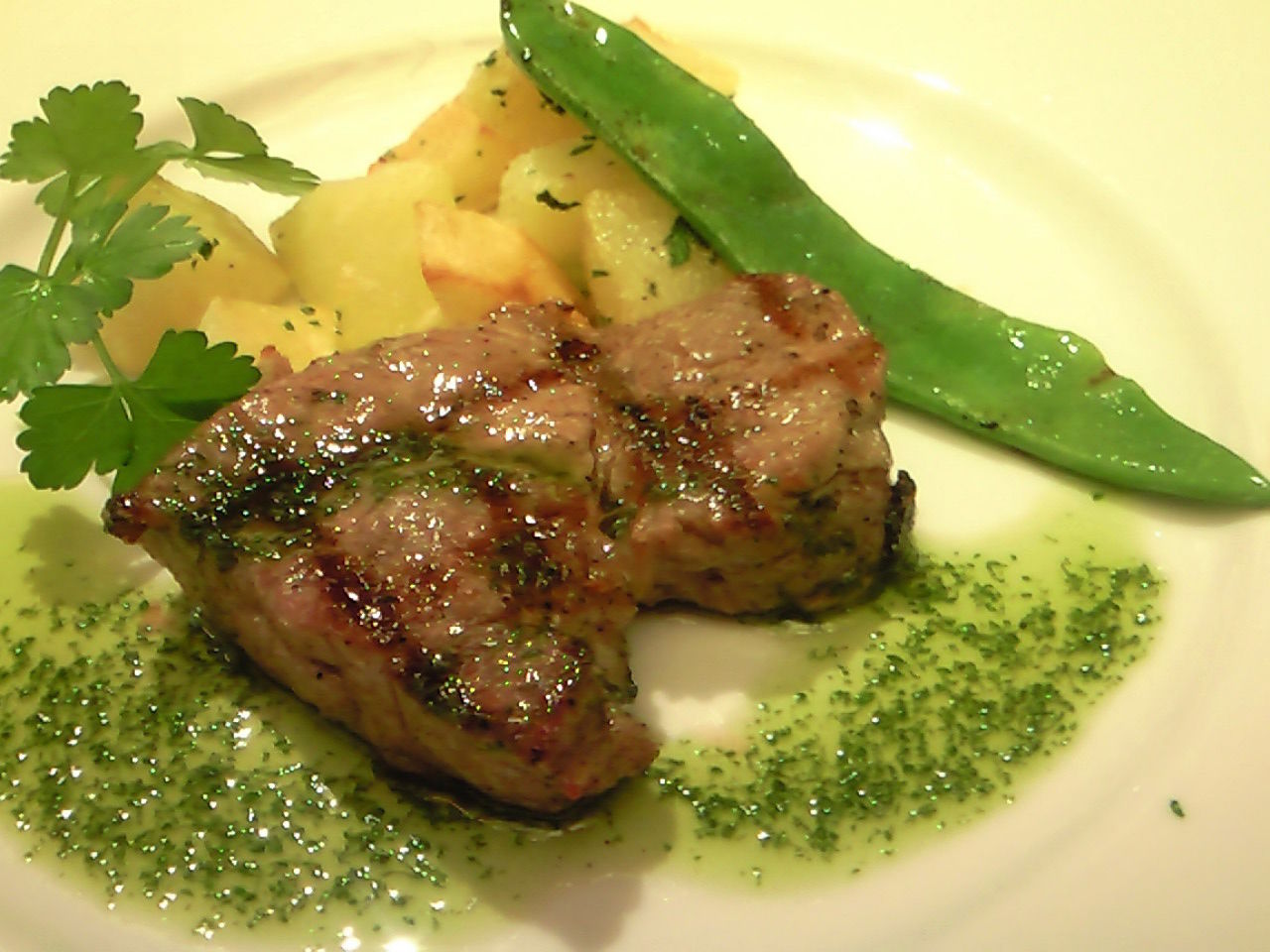 メインのお肉 牛ロースの炭火焼ハーブソース
