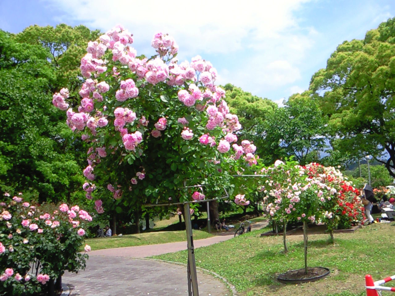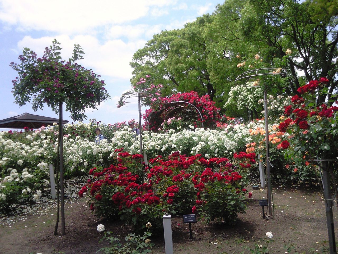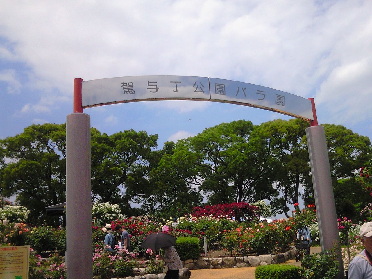 駕与丁公園(かよいちょうこうえん)には無料のバラ園があります。