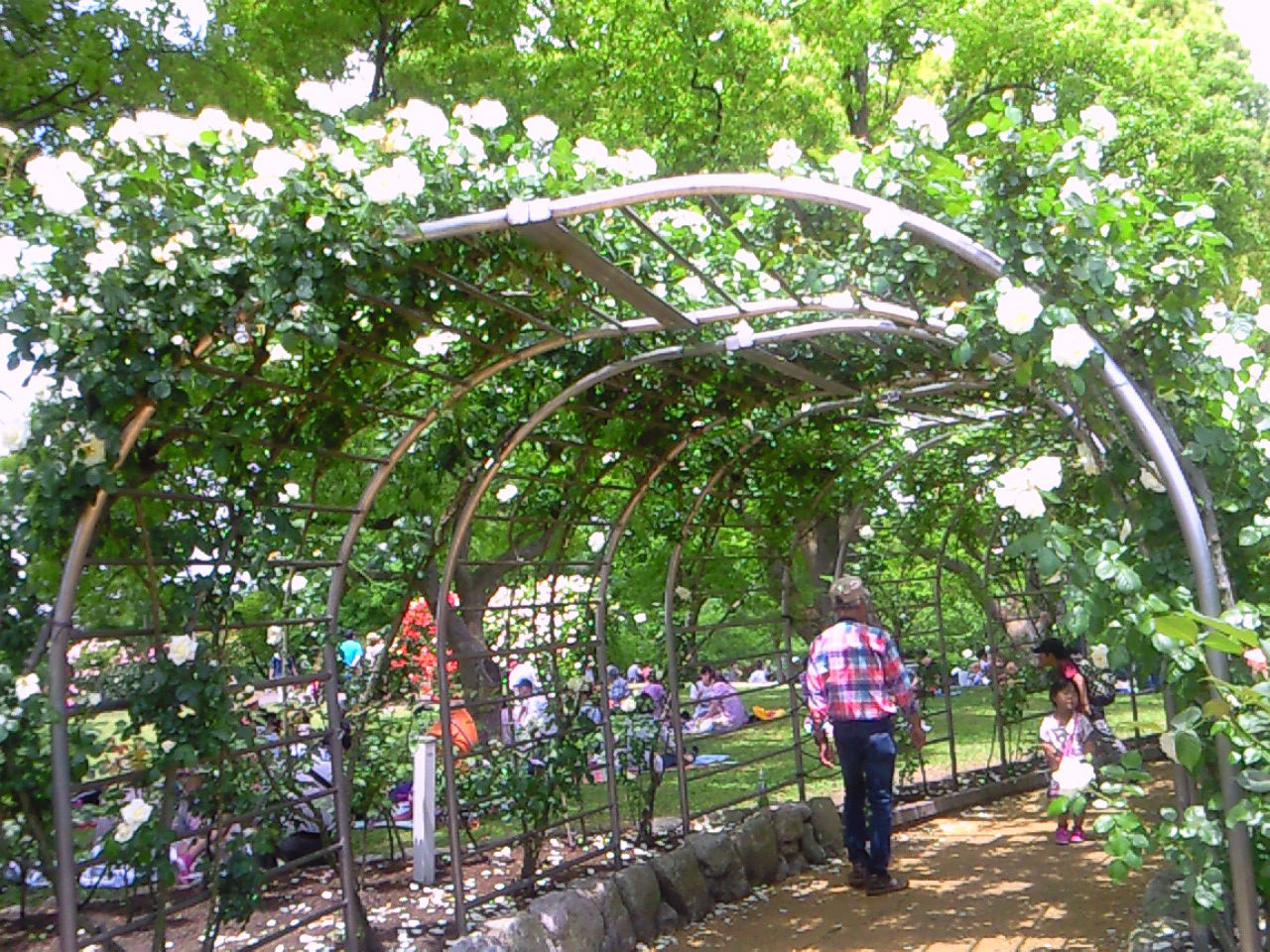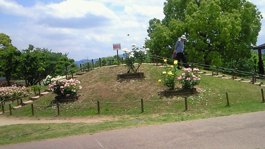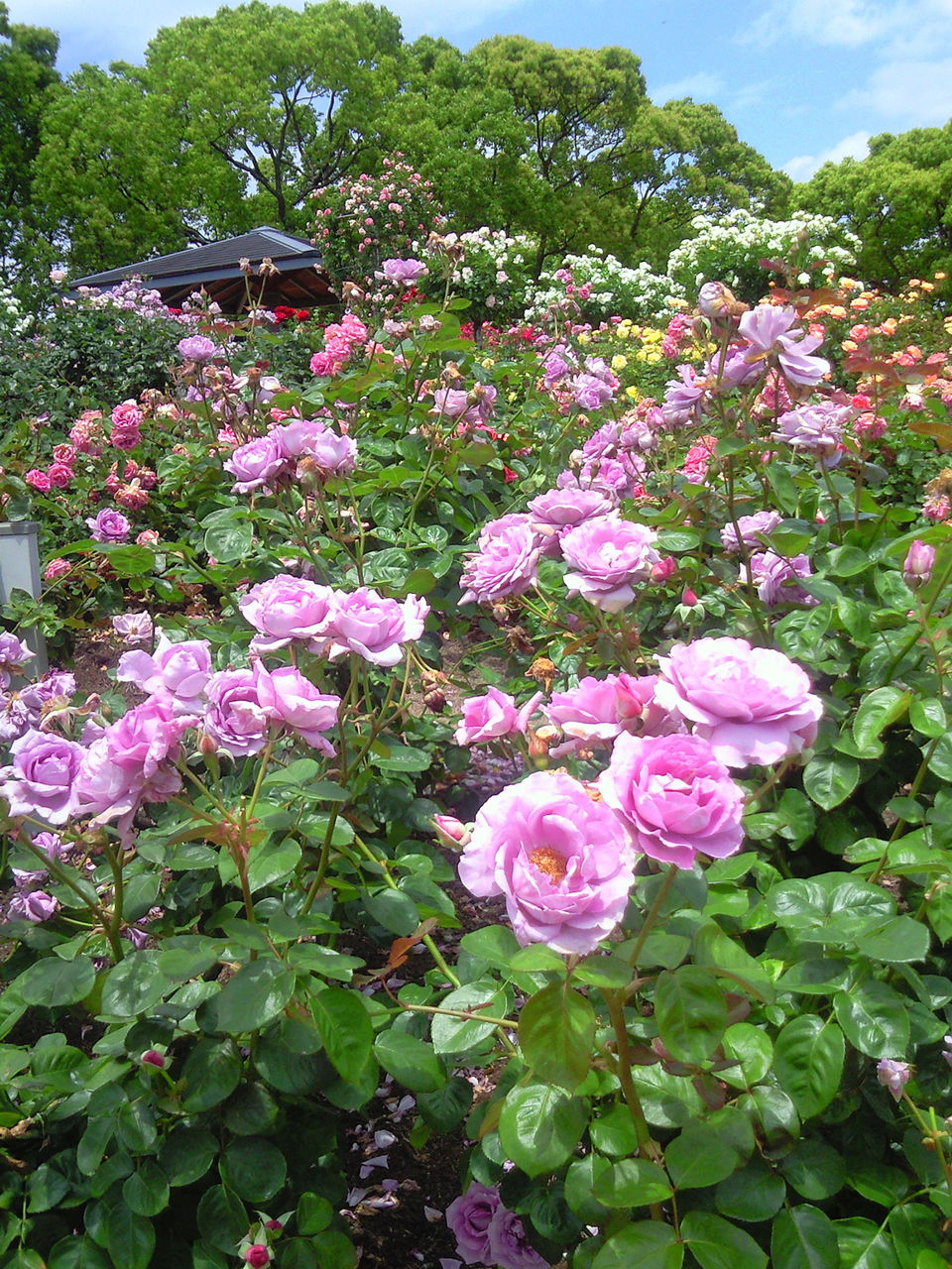 駕与丁公園(かよいちょうこうえん)には無料のバラ園があります。