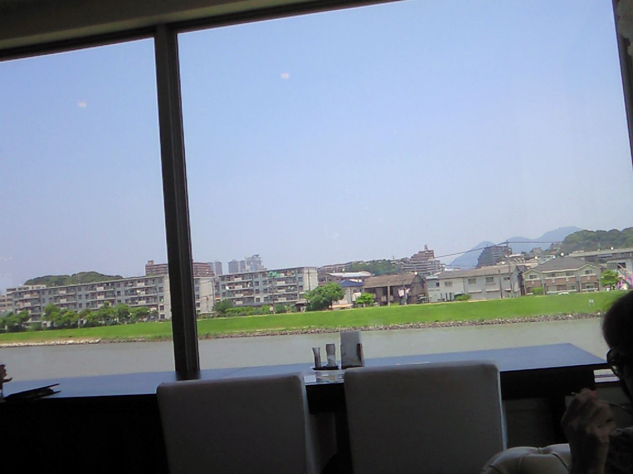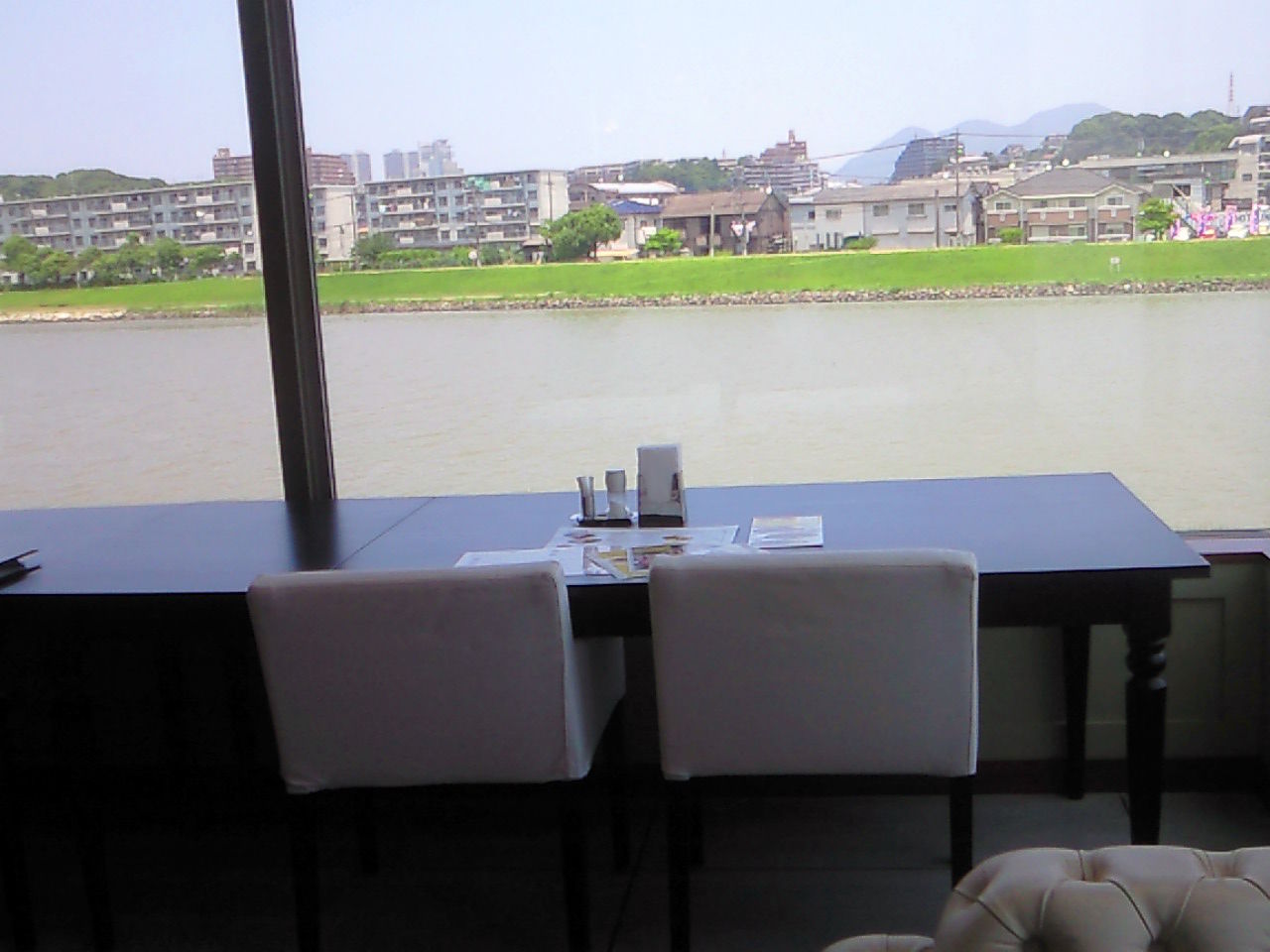 二階のレストランは川沿いなので