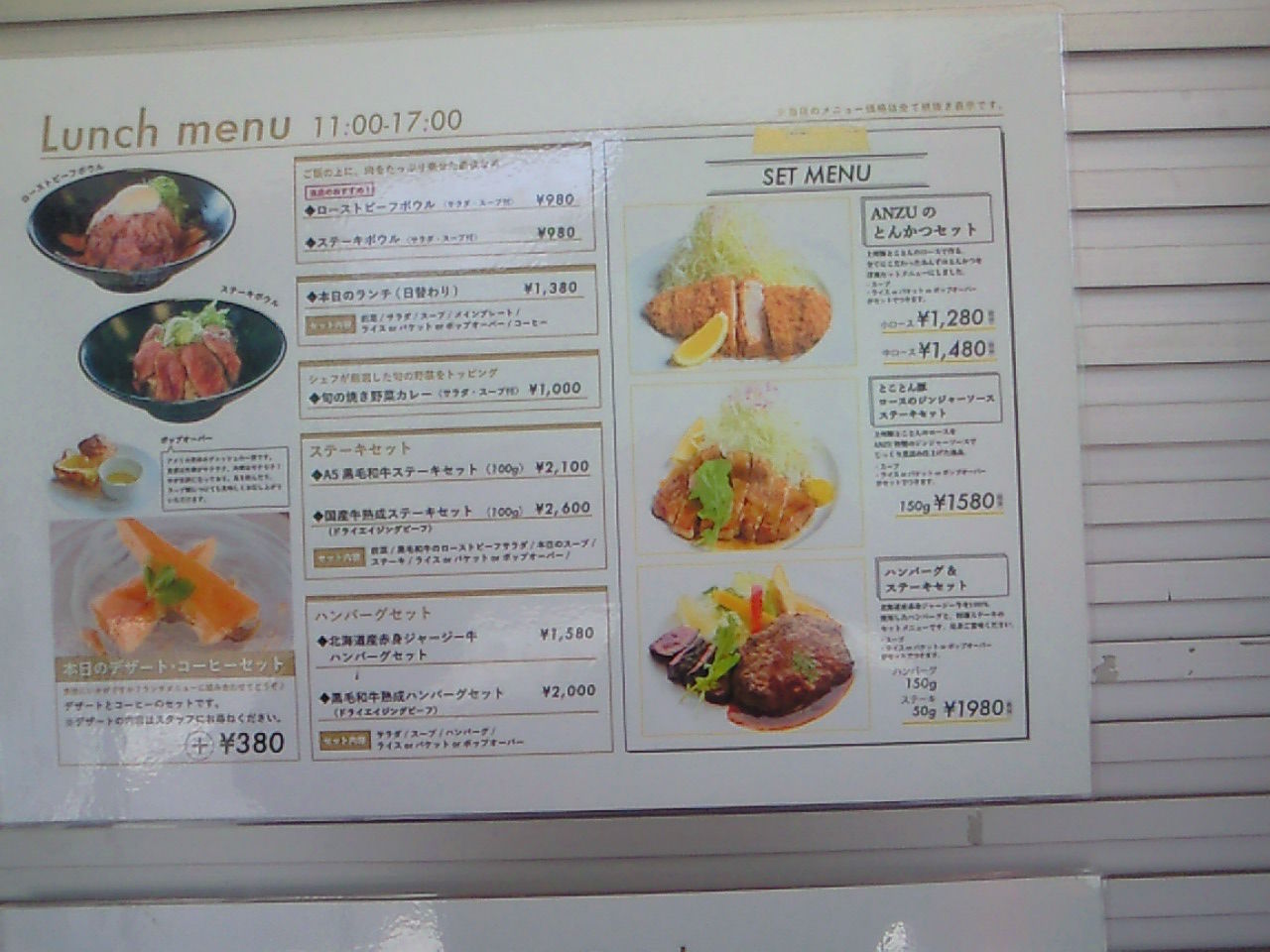 レストランのメニュー