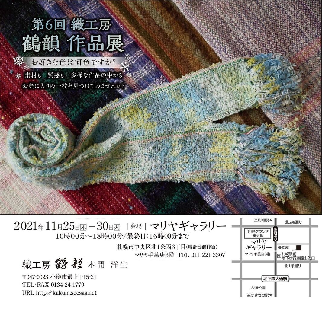 小樽の織工房 鶴韻さんの作品展示販売会がマリヤギャラリーで行われます。