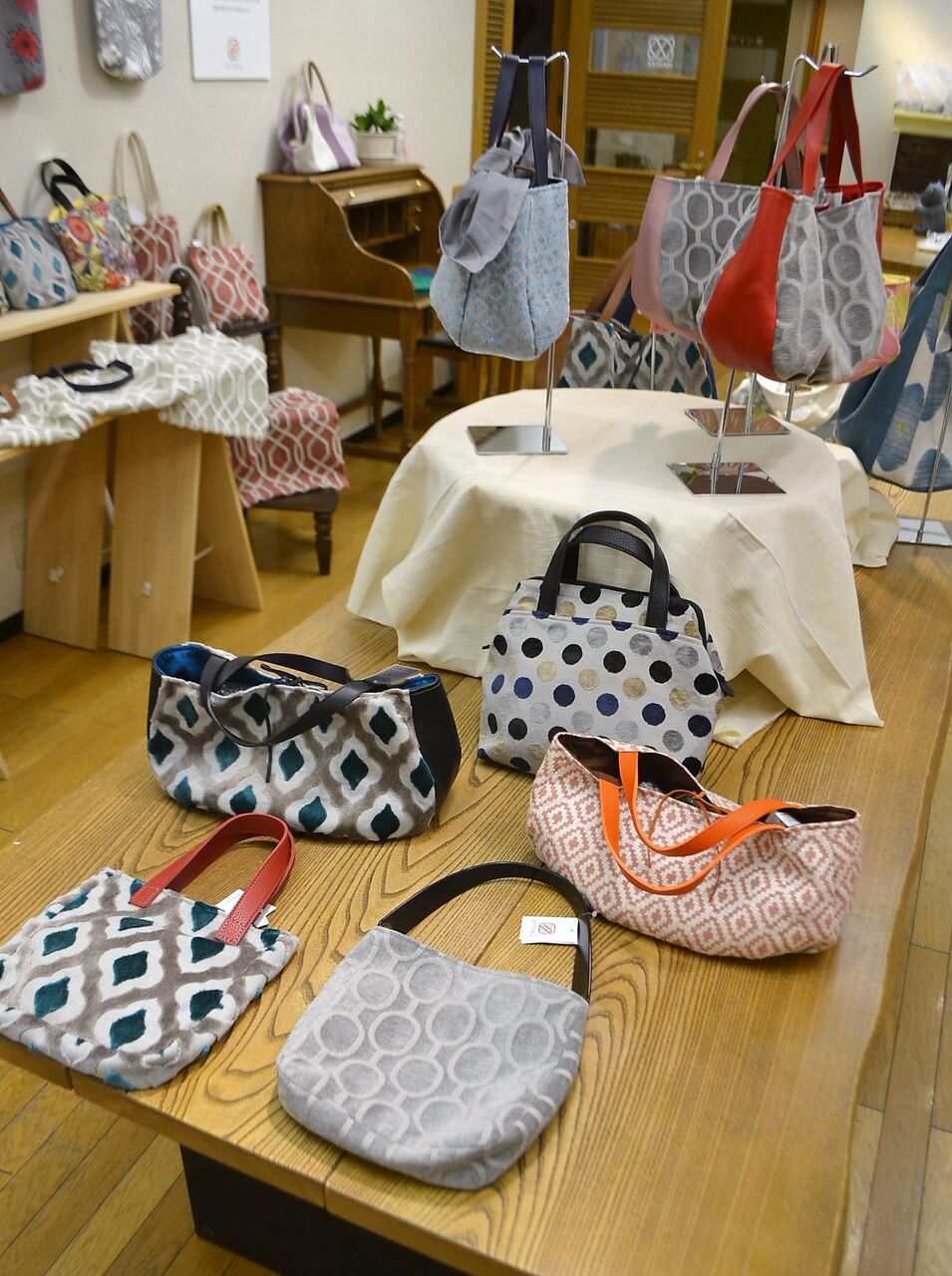 2022年04月23日 ギャラリーレポート『おりなすの韻(おと)2022春ハンドメイド作品展示販売会』2022年4月22日~5月2日※4/27休 ※本イベントは終了いたしました、マリヤギャラリーで初開催、札幌の南平岸で活動されている おりなす さんのハンドメイド作品展示販売会『おりなすの韻』。縫製・手織・レザークラフト・刺繍・アクセサリーなど様々なハンドメイド作品がたくさんです。カラフルな色使いは元気になりますね。細かな手仕事はぜひお手に取ってご覧ください。高品質でお手頃なお値段と驚きますよ。おいしいケーキも販売しております。マリヤのマネージャーは何度ももぐもぐタイムを楽しんでおりました。会期もいつものマリヤギャラリーイベントより長くなっています。桜咲き始めてきたこの時期、素敵なハンドメイドコレクションを増やしてください。