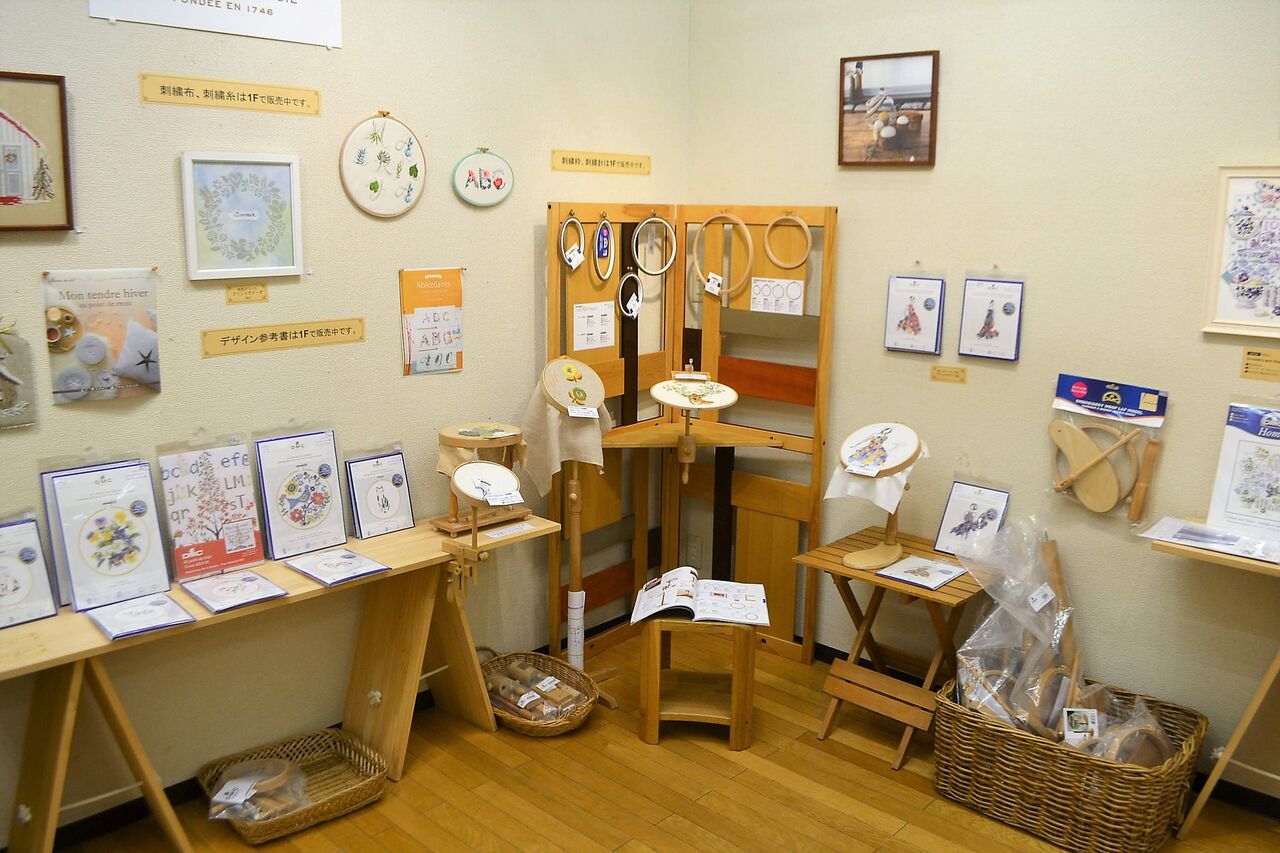 作品展示のほか、刺繍キット、刺繍関連グッズを販売します。