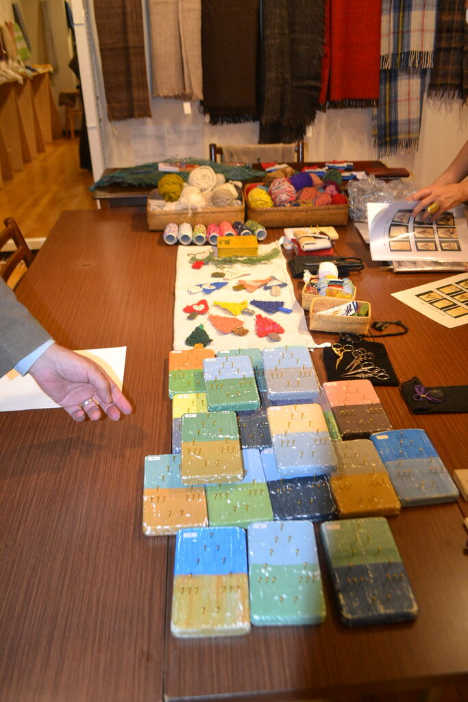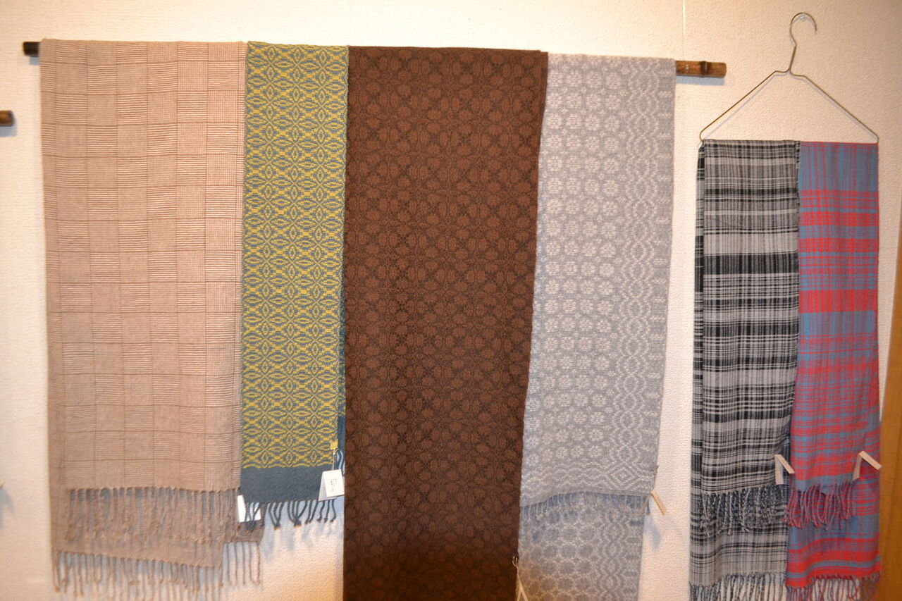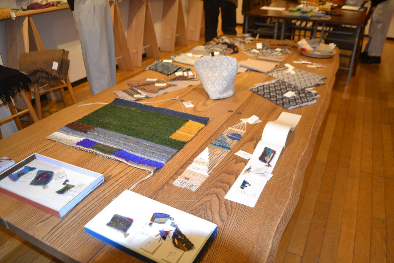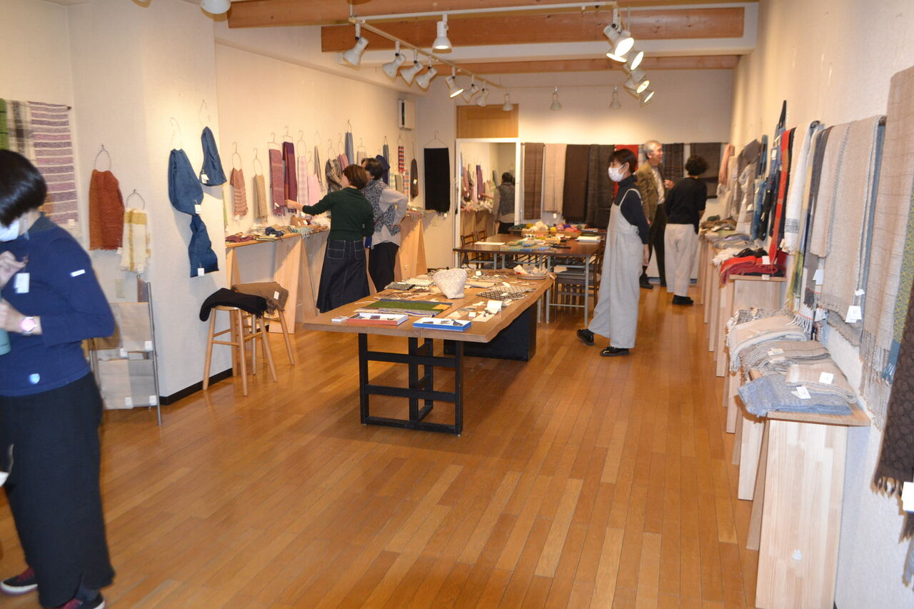 会場いっぱいに素敵でかわいい手織物が展示販売中、ちょうどあったかい服飾品が欲しくなってきた時期ですね、浦田さんのルーツが北海道というご縁もございました。