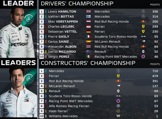 F1ランキング 2019年第20戦ブラジルGP:F1ドライバーズ・ランキング F1コンストラクターズ・ランキング |