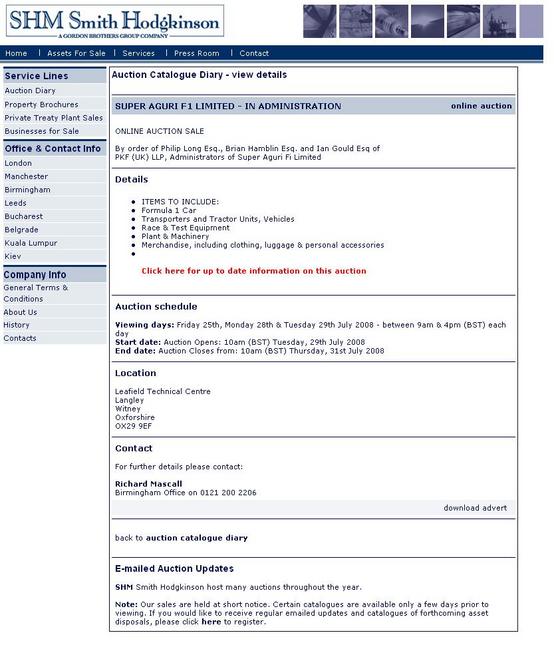 スーパーアグリF1マシン、日本人が8万5,600ポンドで落札 |