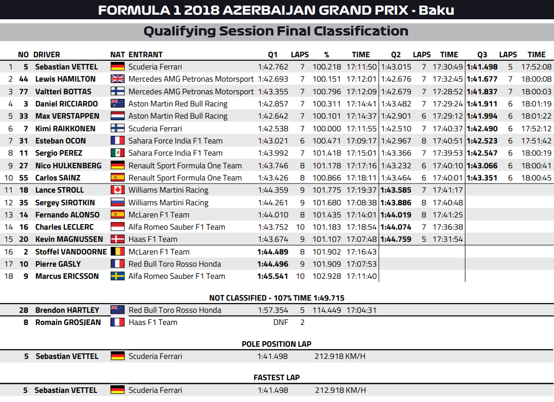 2018 F1 Azerbaijan GP - Qualifying