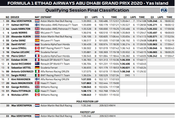 F1アブダビGP スターティング・グリッド |