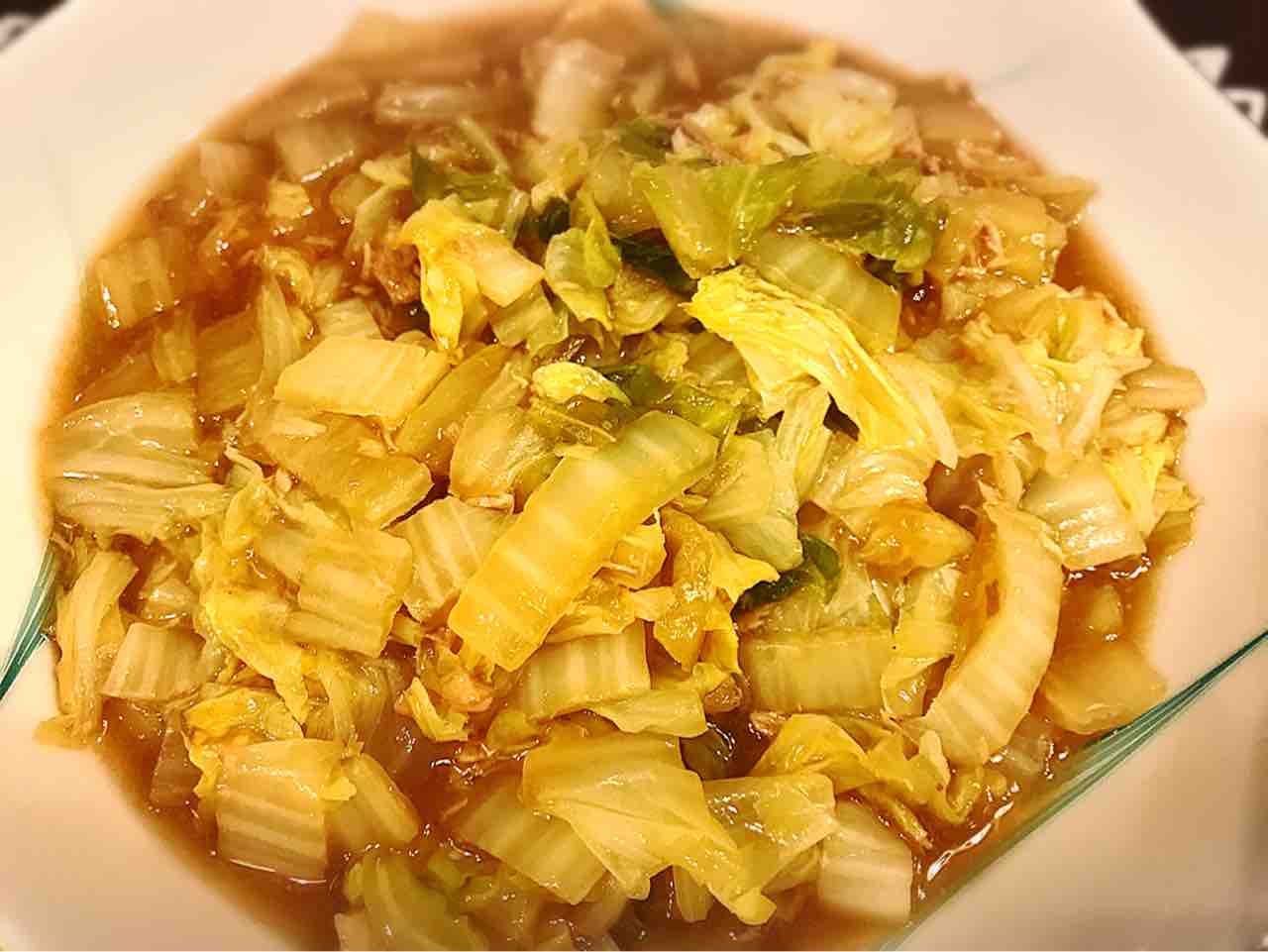 白菜が届きました。ツナ缶(汁も入れる)酒、みりん、醤油で煮て