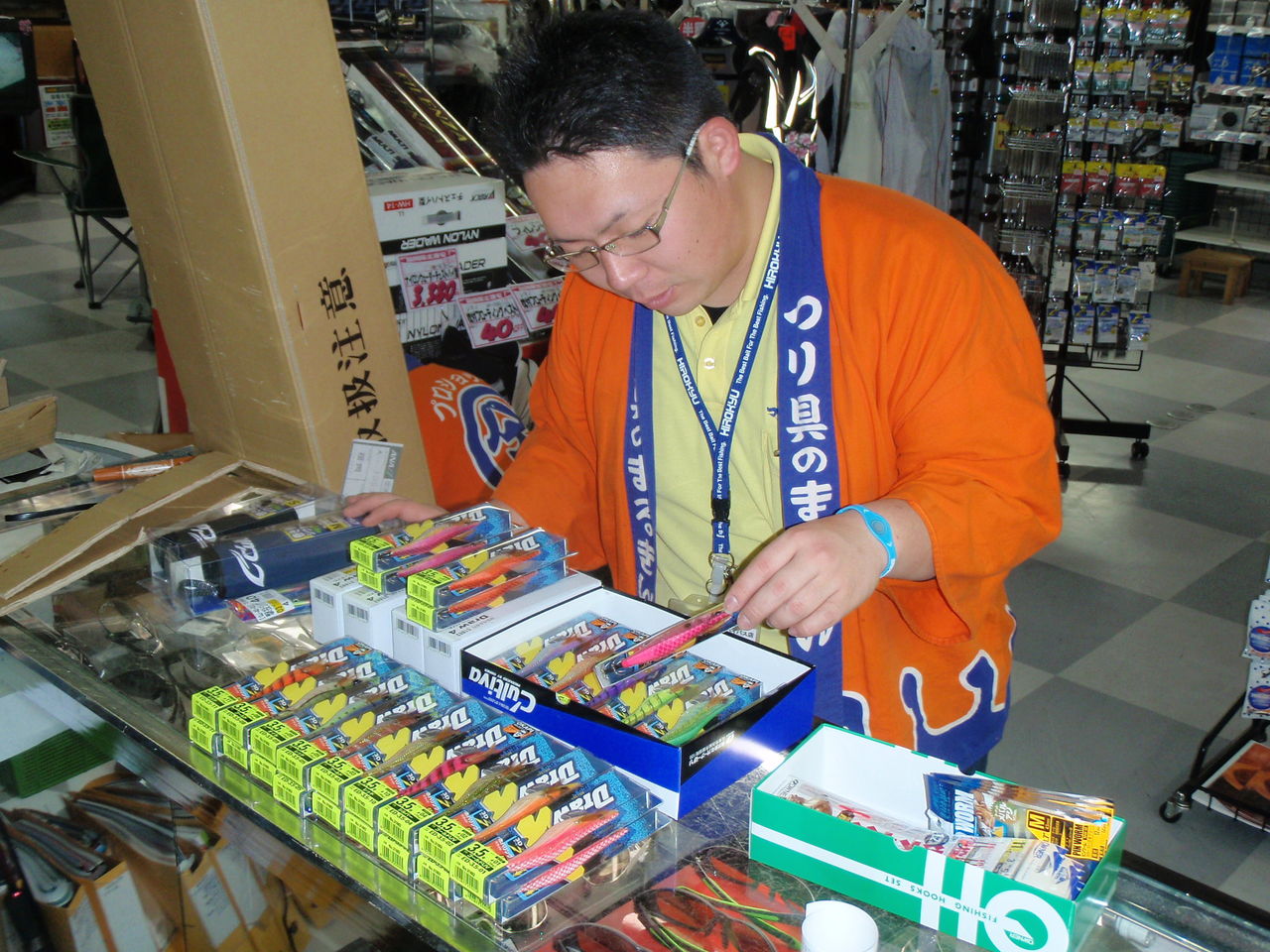 ちょうど店に遊びに来ていたので聞いてみると・・・『呼子周辺のベイトのサイズは4~5センチのキビナゴ!ルアーはショアラインシャイナー MM13F-Gだよ