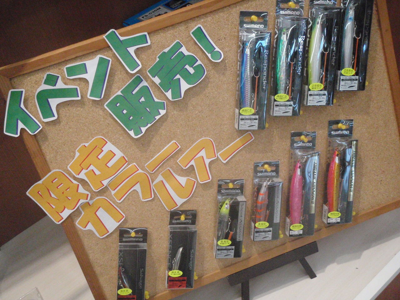 明日は、限定カラーのルアー販売や