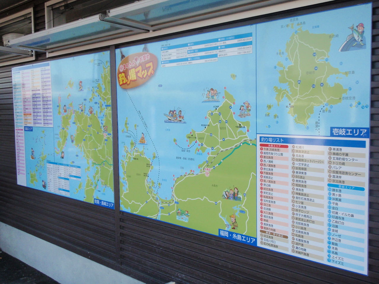 糸島店入り口に、大型の釣り場マップが完成