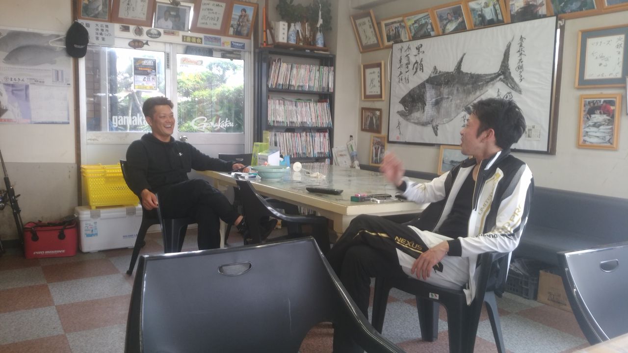 帰港後、待合室で石丸さんが久幸船長に大格闘の模様を解説し、それから親父さんの茂樹船長も加わって話は盛り上がりますがもう後の祭りです。すでに私のハートはリベンジの火がメラメラと燃え上がっていました。