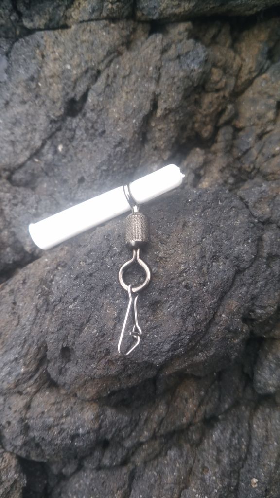仕掛けは、キザクラの石鯛ナマリクッションゴムを利用した自作遠投テンビンです。これはシンプルで投げやすくその上素材がゴムでクッションの役割を果たすため、根掛かりが外しやすいスグレモノです。